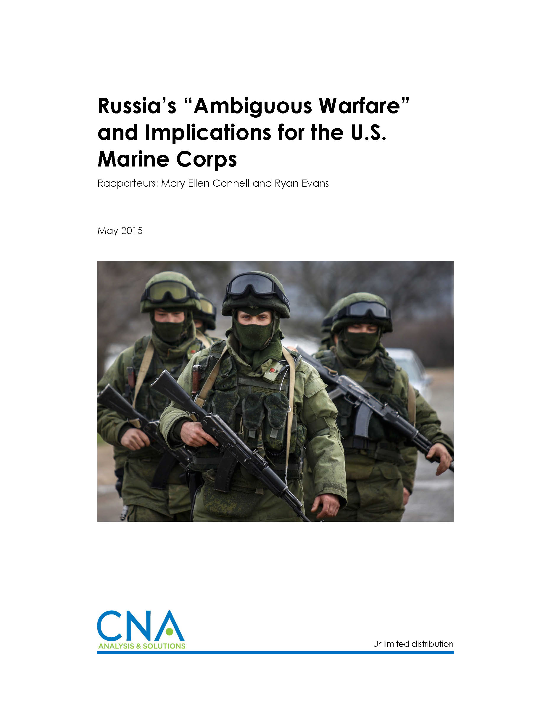 To help answer these questions, and to deliberately raise a host of additional questions that the Marine Corps should think about going forward, CNA convened a one-day meeting of U.S. and international experts on February 25, 2015, to discuss the implications for the U.S. Marine Corps of Russia’s ambiguous warfare. This paper presents a summary of that discussion, which was held under the Chatham House rule of non-attribution to encourage a candid exchange of views.
