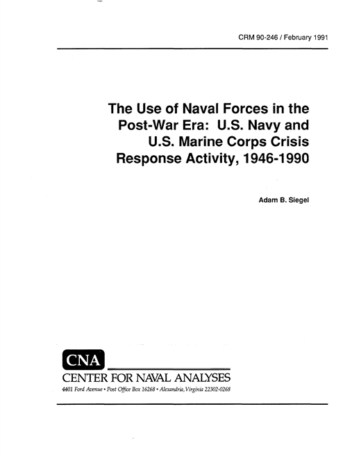 This paper updates CNA Research Memorandum 89-315, U.S. Navy Crisis Response Activity, 1946-1989: Preliminary Report, which was distributed in November 1989.1 Research Memorandum 89-315 documented 187 cases of U.S. Navy crisis response activity in the post-World War II era. The paper was revised to (a) more fully document U.S. Marine Corps activity, (b) include research completed after the original document, (c) improve methodological consistency between periods covered by different sources, and (d) add recent crisis response actions.