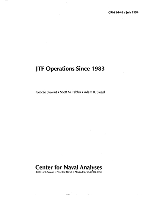 Based on the last ten years, what sorts of operations can we expect a Navy-led JTF to conduct? Experience suggests that more often than not, the operation will be sea based. It is also more likely than not to involve either combat operations or an uncertain security environment We do not expect Navy-led JTFs to play a prominent role in humanitarian assistance operations within the continental United States. This last restriction will probably limit, without eliminating, the number of Navy-ledJTFs dealing solely with humanitarian assistance operations.