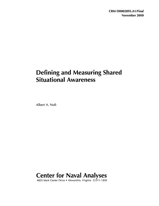 However, there is no clearly understandable, generally accepted, objective way to measure situational awareness, whether for individuals or for groups, and little evidence as to the effect of a distributed environment on the development of shared awareness. Nevertheless, despite the enormous uncertainty in the field, it does seem possible to develop situation-specific ways to estimate the degree of situational awareness that a person or group may possess, and from that to be able to make rigorous statistical inferences as to factors that enhance or degrade it.