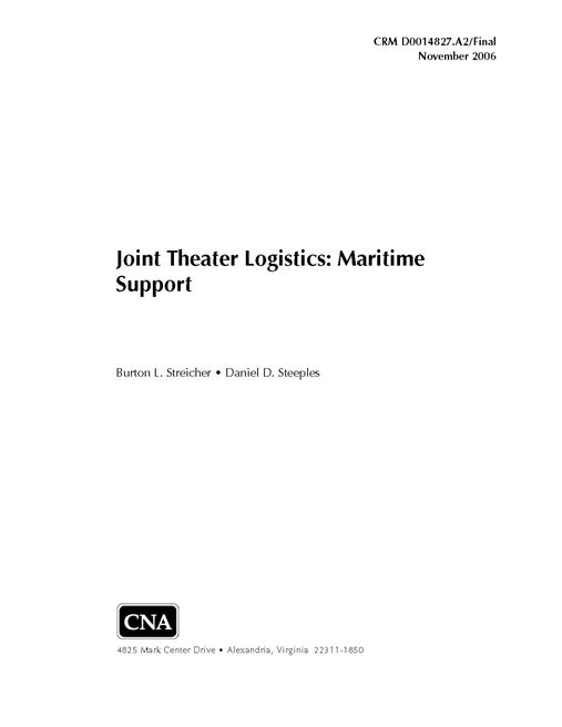 The Director, Supply, Ordnance, and Logistics Operations Division (N41) requested that the Center for Naval Analyses (CNA) examine the feasibility of better integration of current Navy logistics practices and organizational structure into joint theater logistics (JTL). We explored the evolving maritime element of JTL and the Navy’s role in supporting it. We found that new joint logistics doctrine is being rapidly developed as part of the overall DOD transformation effort and that each military Service has a different approach to accomplishing focused logistics.