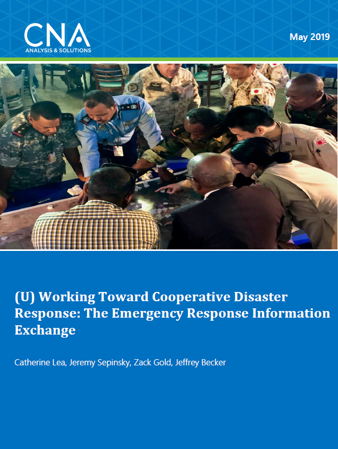 CJTF-HOA asked CNA to design a scenario and facilitate discussions among Djiboutian officials and representatives from the multinational military forces stationed in Djibouti on the response to a large-scale natural disaster in Djibouti City. ERIE included participants from the US, French, Japanese, Italian, German, and Spanish militaries stationed in Djibouti. The discussion also included senior civilian and military representatives from the government of Djibouti and international organizations operating in Djibouti.
