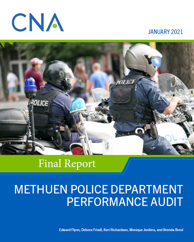 In May of 2020, the City of Methuen, through a competitive bid, selected the CNA Center for Justice Research and Innovation to conduct a performance audit of the Methuen Police Department (MPD). In conducting this audit, the CNA team developed an objective and in-depth understanding of MPD’s operations in areas including budget, equipment, training, staffing levels, and processes (hiring, equipment acquisition, and development of policies and procedures). After the onset of the audit, the CNA audit team was made aware of concerns about department leadership, organizational culture, and department personnel morale. Although the City of Methuen did not originally contract with the CNA audit team to explore these issues, we expanded the scope of our inquiry and this report to reflect these emerging topics.
