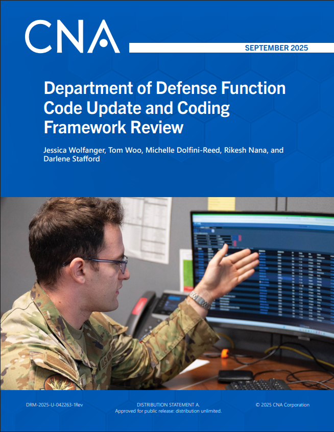 Historically, DOD function codes, submitted annually in the Inherently Governmental and Commercial Activities Inventory, have been relied on to identify work that could be considered for competition with the private sector and have been associated with the Office of Management and Budget Circular A-76 processes. Although the A-76 program remains suspended, the pressure to shape the total force effectively and economically—coupled with sustained scrutiny on the size, shape, structure, and workload alignment across the total force—means that these function codes must remain relevant and current. The current set of function codes, however, has not been reviewed since the previous CNA study in 2019,1 and the recommended code revisions from that study were not implemented at the time; the 2010 function codes remain active. Therefore, TFM&RS asked CNA to review the function codes again and to determine additional changes to the codes required by changes in work performed by DOD in the past five years.