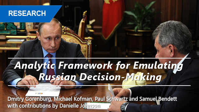 CNA's work on Russia goes back to studies done on Soviet Naval doctrine in the 1960s. This portfolio has expanded to include work on Russian military modernization, strategy, operations, decision-making, and the Russian way of war. The Russia Studies Program (RSP) includes native speaking Russia analysts with deep knowledge on operational and strategic level issues. Over the last few years, RSP has supported sponsors in a variety of ways, including studies both at the unclassified and classified levels), workshops, conferences, and games.