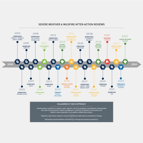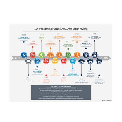CNA’s Center for Critical Incident Analysis helps agencies and jurisdictions assess and improve their response to real-world emergencies, incidents, and events. CNA employs a scalable approach to conducting after-action reviews, tailored to the complexity of the incident or event, the resources and time available to conduct the review, and the desired outcomes.