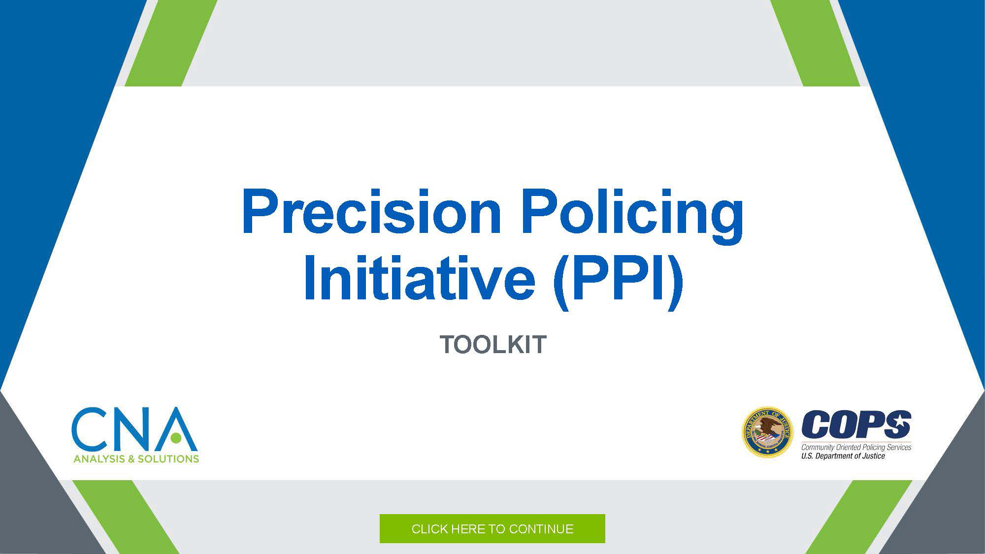 CNA developed this toolkit to help law enforcement agencies across the nation to share information about promising programs. This interactive presentation includes links to resources from the COPS Office Precision Policing Initiative (PPI) and other collaborative efforts to provide safer neighborhoods by leveraging partnerships, analysis, research and technology. The goal of this toolkit is to help police identify and implement similar activities that will benefit their own agencies.
