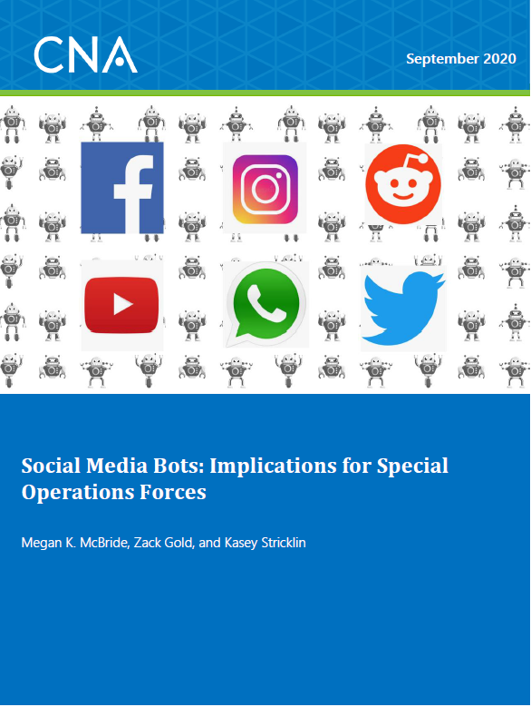 Social media bots—automated programs on social media platforms—have been an object of national interest and analysis for nearly four years. Although there has been a flood of reporting on social media disinformation and manipulation, CNA initiated this study to explore the specific implications of social media bots for US special operations forces (SOF) and the broader national security community. In this report, we highlight the tremendous capacity that the successful deployment of social media bots (or networks of bots, known as “botnets”) has to influence public discourse. If deployed effectively, bots could be a powerful asset in the US government’s toolkit, with benefits that outweigh the attendant risks.