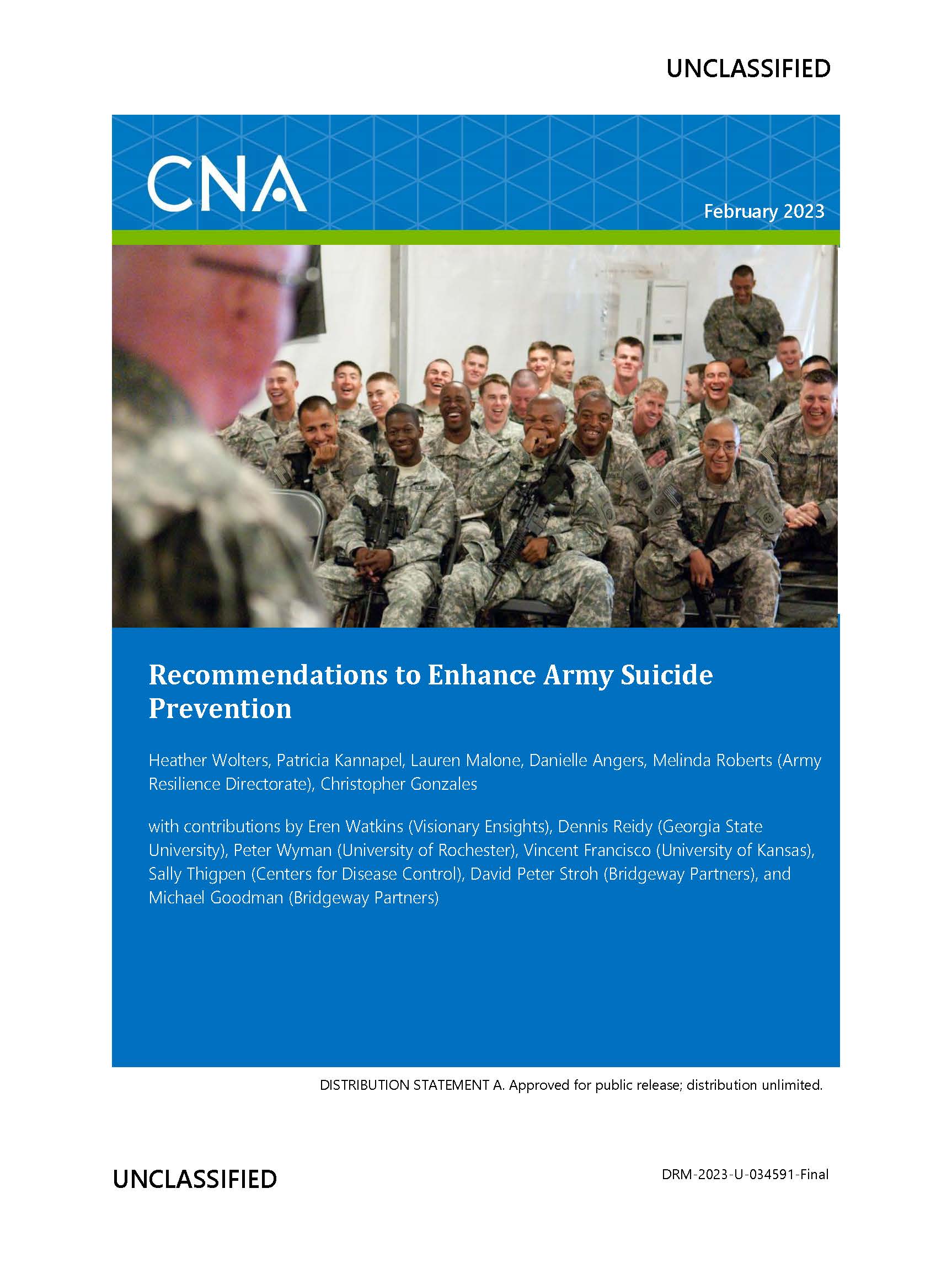 This report provides recommendations for Army Senior Leaders that aim to improve the effectiveness of efforts to prevent harmful behaviors. The recommendations align with the Department of Defense’s Prevention Plan of Action, which includes understanding the problem, developing a comprehensive approach, ensuring quality implementation, and providing continuous evaluation.